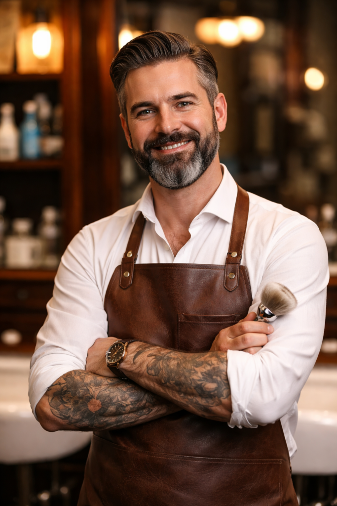 Jeroen heeft meer dan 12 jaar ervaring als barbier en is gespecialiseerd in traditioneel nat scheren. Hij begon zijn carrière in een klassieke barbershop in Rotterdam en ontwikkelde daar een passie voor huidvriendelijk scheren zonder irritatie.